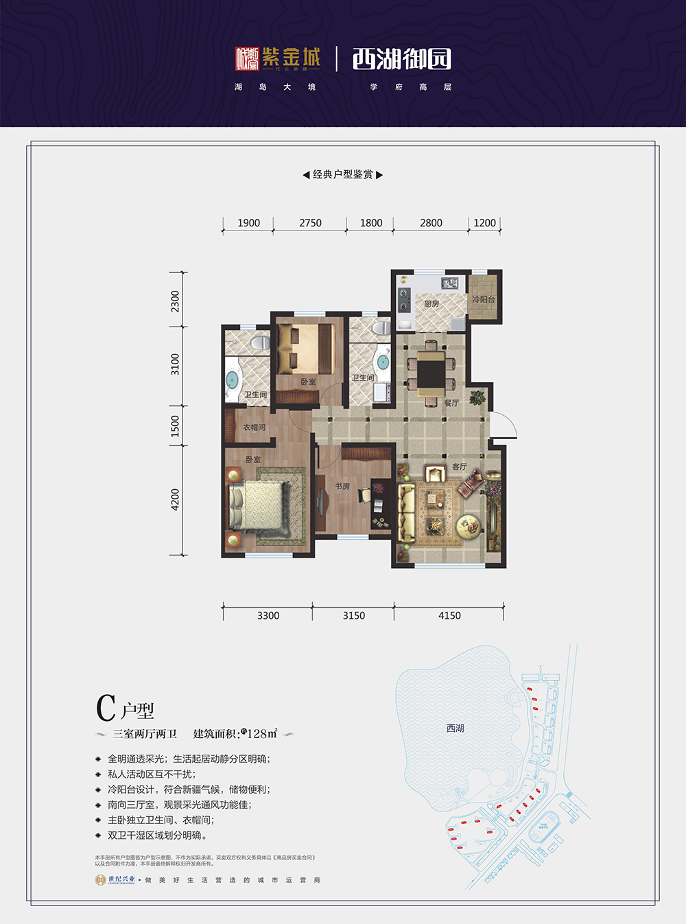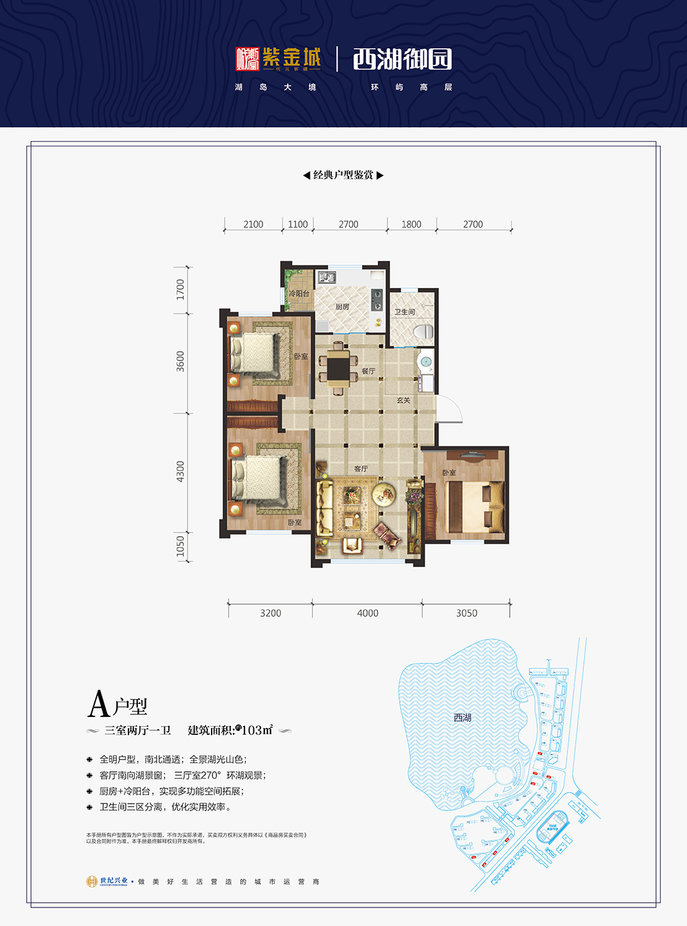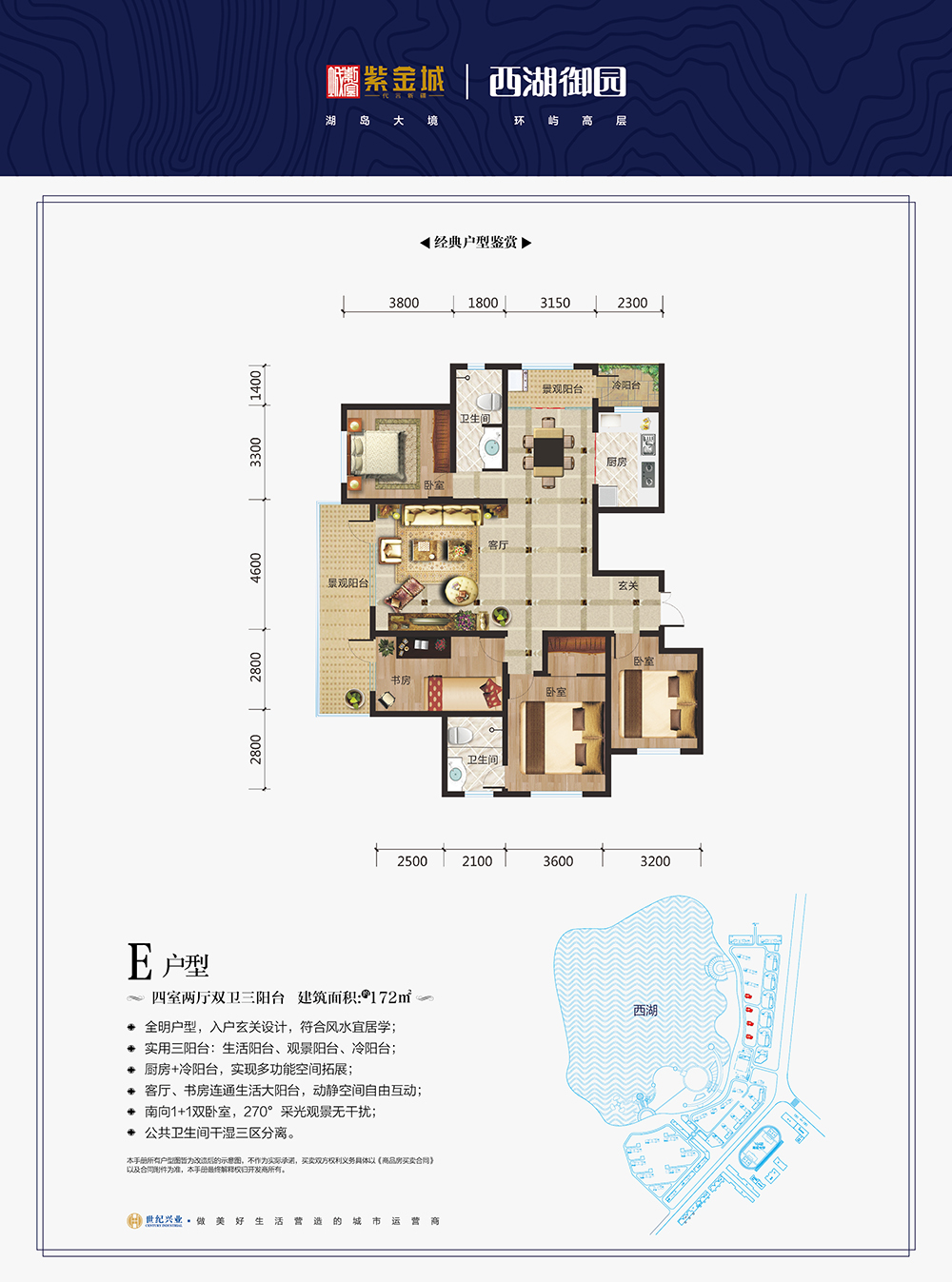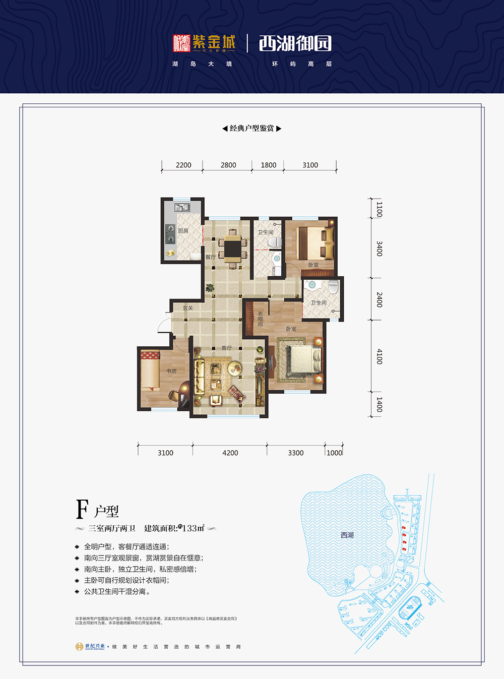 此項(xiàng)目總占地20萬(wàn)平米,總建筑面積50萬(wàn)平米,容積率為2.15,規(guī)劃內(nèi)有高層、大型臨街商業(yè)、幼兒園,集居住、休閑、娛樂(lè)、教育于一體的生態(tài)居住環(huán)境。西湖御園主要產(chǎn)品為高層住宅,層高3米,面積區(qū)間為88-172平米,建筑形態(tài)為新古典主義(Art-deco),采用一梯兩戶、兩梯三戶、兩梯四戶設(shè)計(jì)。