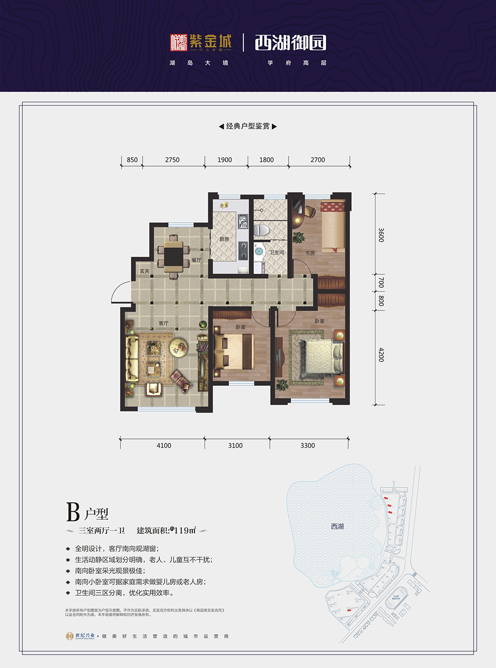西湖御園擁有得天獨(dú)厚的自然地理?xiàng)l件,毗鄰2900畝紫金公園,依山傍湖,環(huán)抱300畝原生態(tài)湖泊,形成了一軸一湖兩園的稀缺景觀格局,打造新疆首例[杭州西湖]原生微縮景觀群落。